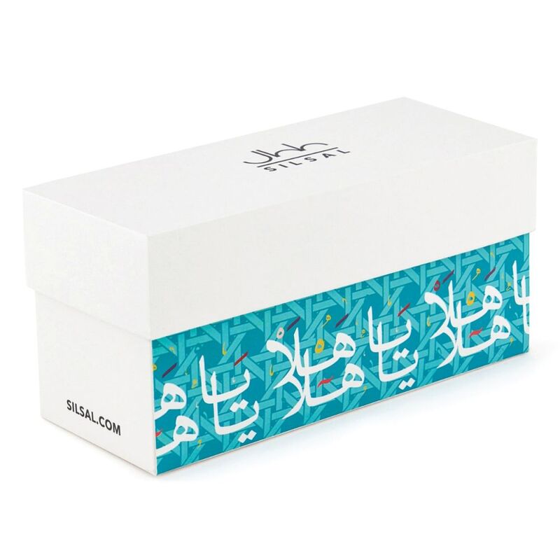 Crafted from porcelain, this set of 2 Arabic coffee cups is adorned with a colorful pattern inspired by the traditional Lebanese art of chair caning. Created in collaboration with event planner Maya Toubia, the cups are finished with the phrase “Ya Hala, Ya Hala”, meaning “Welcome”. Presented in a signature Silsal gift box, these eye-catching cups are the perfect way to start the day or end a meal.