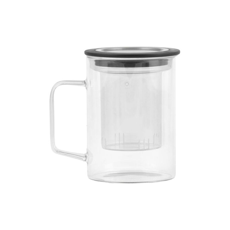 An elegant and practical glass that has a brewer inside, into which leaf or granulated tea is poured. The brewer has special notches in the underside that allow the brew to circulate freely. It traps the grounds inside, leaving clear tea in the glass. It has a specially shaped lid made of stainless steel and plastic in black. Steam and pressure will find an outlet thanks to an opening in the wall of the brewing section and in the lid. The optimum capacity will allow you to enjoy a large portion of hot and aromatic tea, and the comfort of tasting will be ensured by the wide and handy ear. The transparent glass walls allow you to follow the brewing process and control the intensity of the tea.