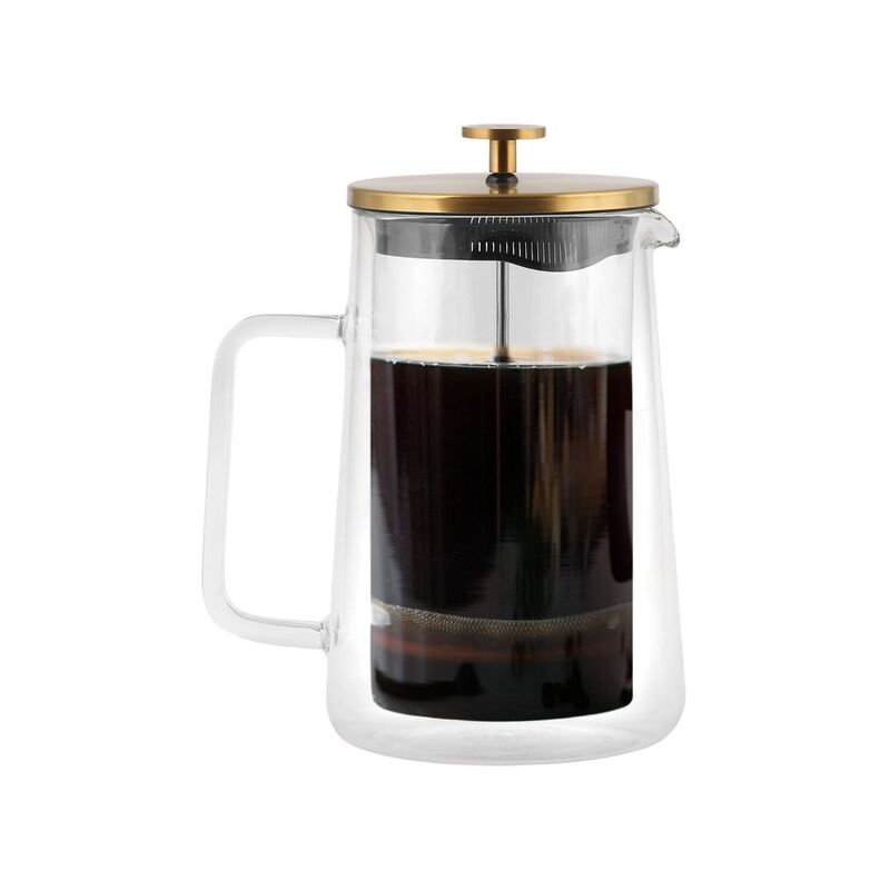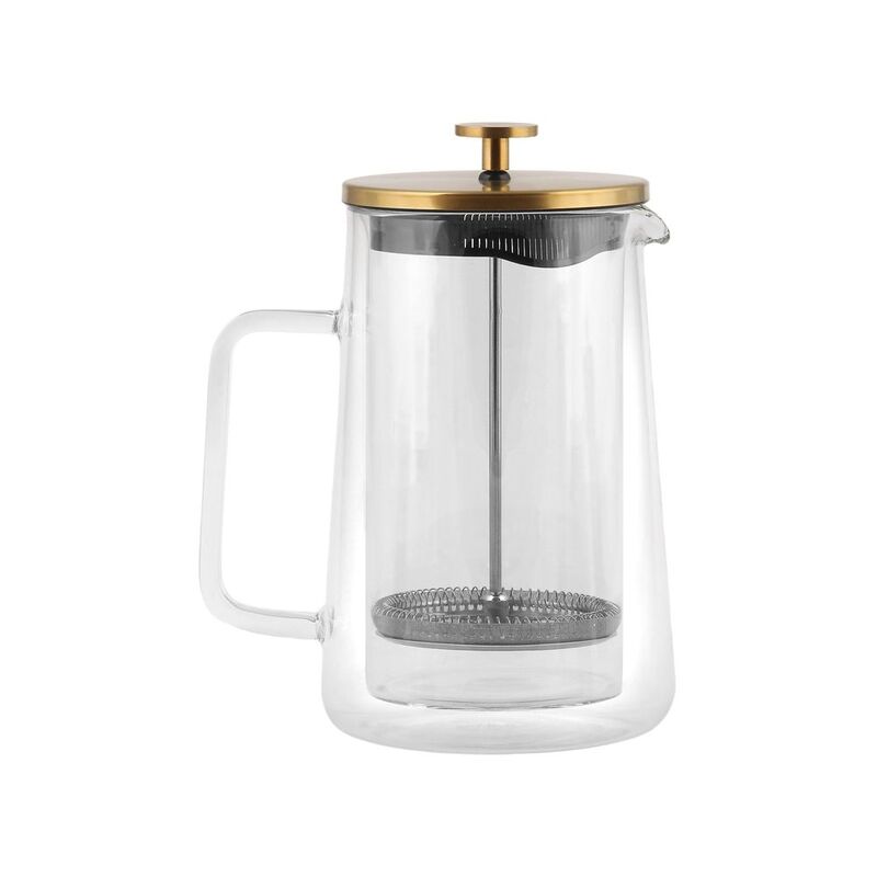 Vialli Design Double Wall Tea Pot With French Press 1000ml Gold Matt Diva
