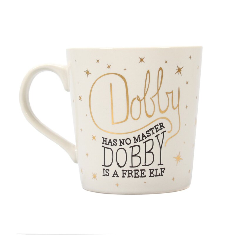 This magical Harry Potter mug is sure to get you ready for a hard day of magic. With a lovely tapered shape, the mug reads 'Free the House-Elves' and features a wonderful sketch-style design of everyone's favourite House Elf, Dobby, surrounded by magical stars in metallic gold detailing. The back reads one of his most famous quotes 'Dobby has no master, Dobby is a free elf', again surrounded by metallic gold stars. Packaged in a printed gift box, this mug makes a wonderful gift for any Harry Potter or Dobby fan.