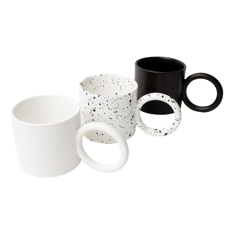 With a larger than life handle, this contemporary mug is a modern classic needed in every kitchen. The 'Eva' mug would make for a truly interesting gift or a lovely treat for your own kitchen cupboard. Available in black or b&w speckled design.