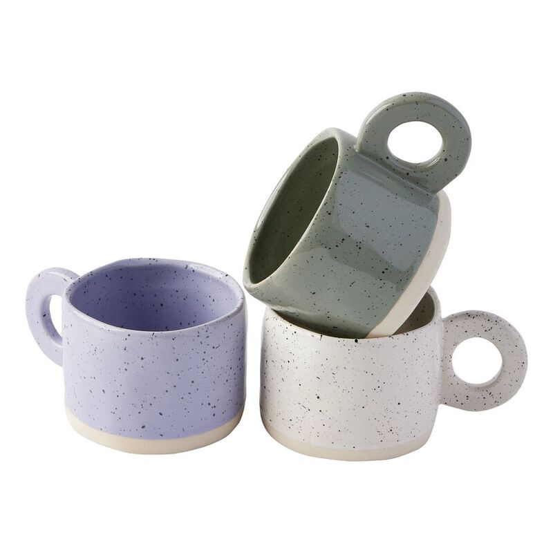 The 'Greta' mug has a Scandinavian aesthetic and is a lovely ceramic staple for your collection, especially if you love a cozy atmosphere. Available in speckled Pearl White, Fern Green and Lilac.