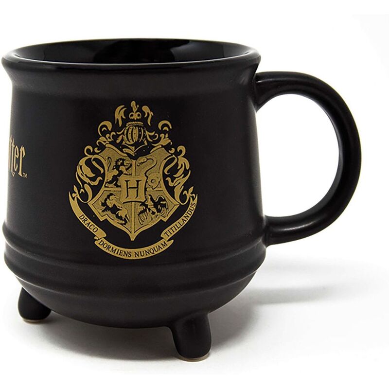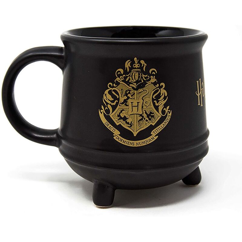The three legged cauldron features the Hogwarts crest in gold on the side and holds 511ml of your favourite drink.