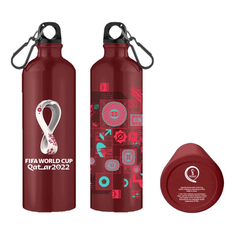 FIFA World Cup Qatar Qatar 2022 Graphic Printed Aluminium Water Bottle 750Ml Maroon. Enjoy a drink in this FIFA inspired bottle, wherever and whenever you want!