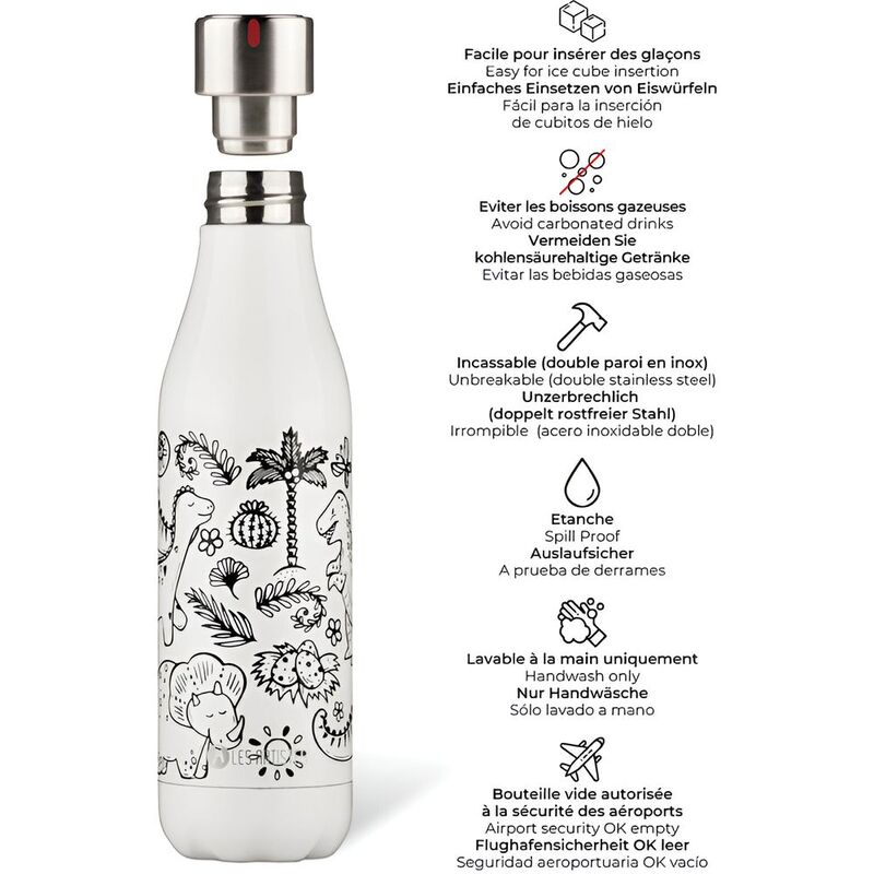 Double-walled in stainless steel, allowing drinks to be kept hot for 12 hours and cool for 24, Copper plate keep hot/cold twice as long without altering their taste or flavor. The silicon gasket on the lid ensures perfect tightness and is leak-proof. High Resistant Paint, Easy to clean . Shock resistant. This colouring model comes with 6 washable felt-tip pens, so you can draw dinosaurs over and over again.