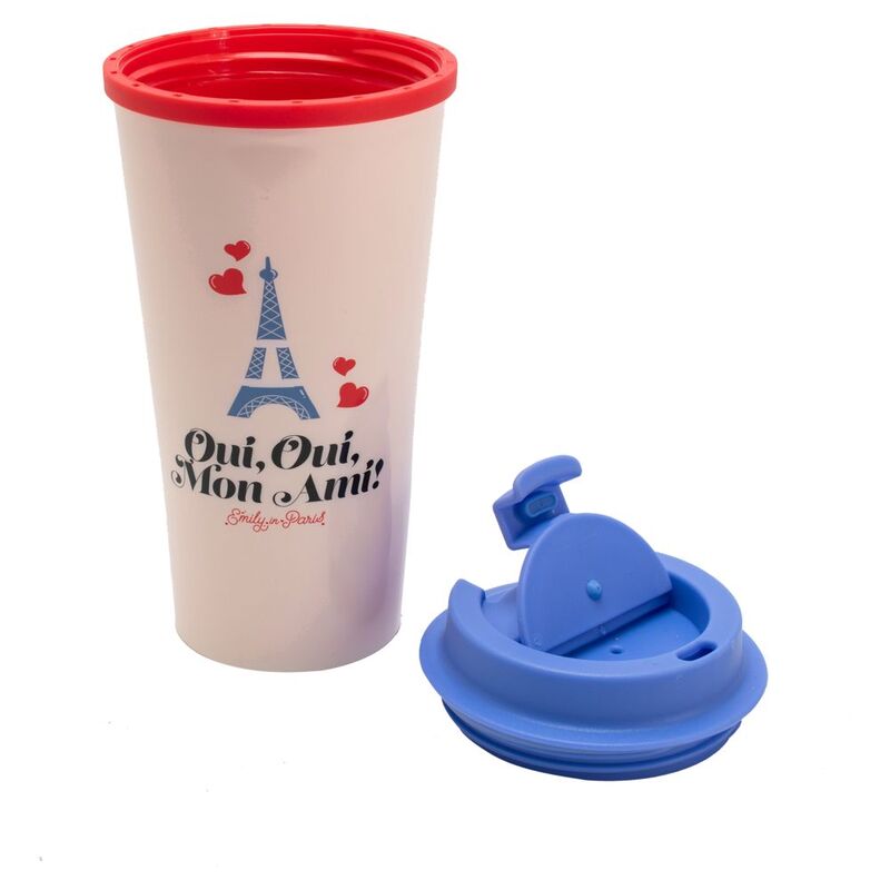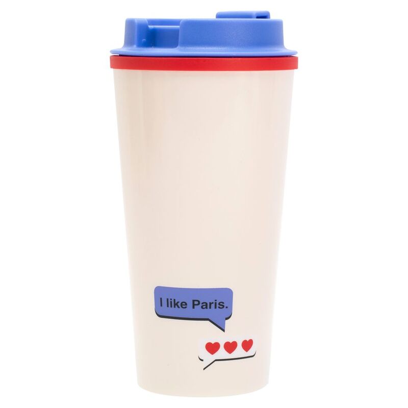 450ml double walled thermal travel flask with screw top lid and flip back hinged lid for anti spill. Rubberised base for anti slip.