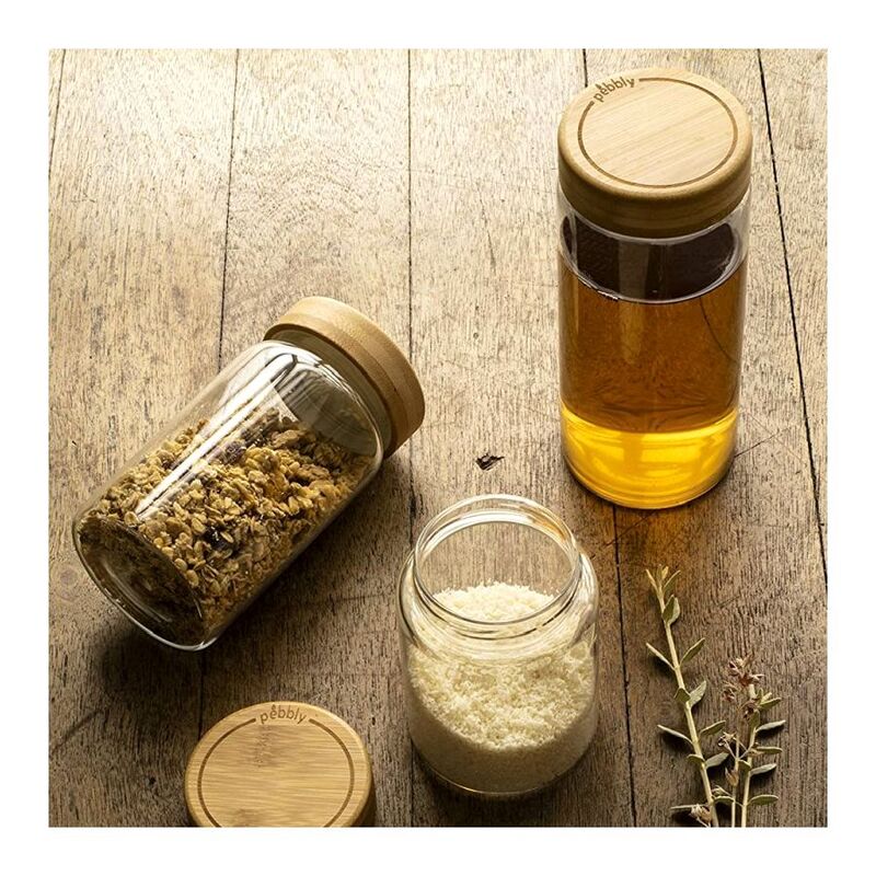 Pebbly Round Glass Jar W/ Screw Bamboo Lid 650ml