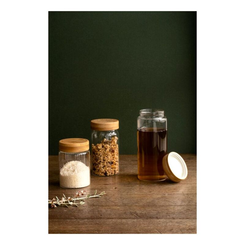Made of borosilicate glass, a healthy and resistant material, these jars will quickly become essentials in your kitchen storage. Their hermetic screw-on bamboo lid allows you to keep all the freshness of your preparations. For storing vegetable pickles, leftover meals or even dry food, these jars are perfect for easy everyday use!