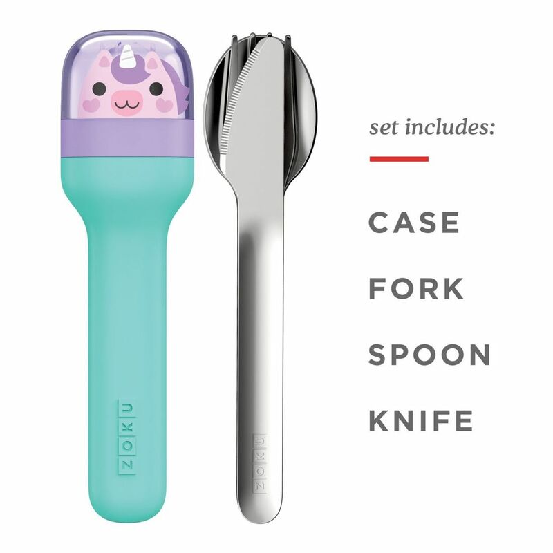 Zoku’s Kids Pocket Utensil Set is easy to use and even easier to clean! The neatly nesting set of 3 utensils includes a spoon, fork and knife. The utensils are made of durable 18/8 stainless steel and stow snugly into the slim travel case. The Pocket Utensil Set comes in many fun designs and is made to fit easily in a backpack or lunchbox. Now your kids can put their dirty utensils back in the case and keep their backpacks and lunchboxes free of any food debris.