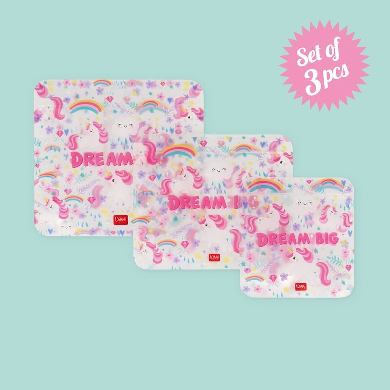 Legami Set of 3 Reusable Snack Bags - Unicorn