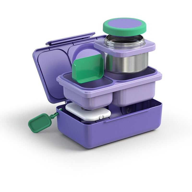 The Omiebox UP is designed to fit into your backpack. This streamlined and compact insulated bento box comes with a removable thermal jar, allowing you to keep hot and cold food in the same container. The thermos ensures warm meals, while the neighboring food stays cool in the air-insulated bento tray above a removable ice pack. Pack healthier lunches, including snacks, soups, salads, pasta, and more. The Omiebox UP maintains a more compact overall size compared to the previous Omiebox, featuring a larger thermos and fewer, but bigger compartments for added convenience.