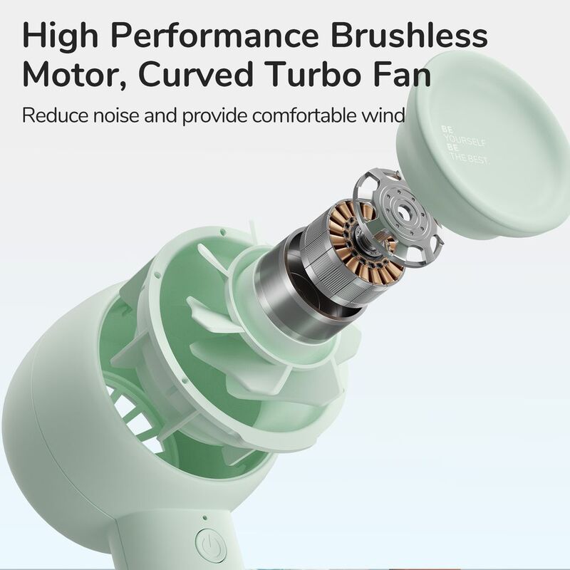 JISULIFE Personal Handheld Fan features a highperformance motor and optimized air duct to improve wind power while minimizing noise. Compared to other handheld fans, it has a faster speed (6100 r/min) and stronger wind (4.8 m/s).