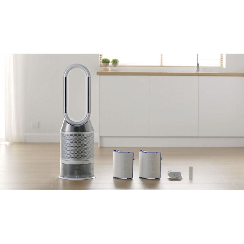 The Dyson purifier humidifier is engineered to help improve your air quality. Its activated carbon filter removes gases and its HEPA H13 filter captures 99.95% of particles as small as 0.1 microns. Air Multiplier™ technology then projects purified, humidified air throughout the room – cooling you when required.