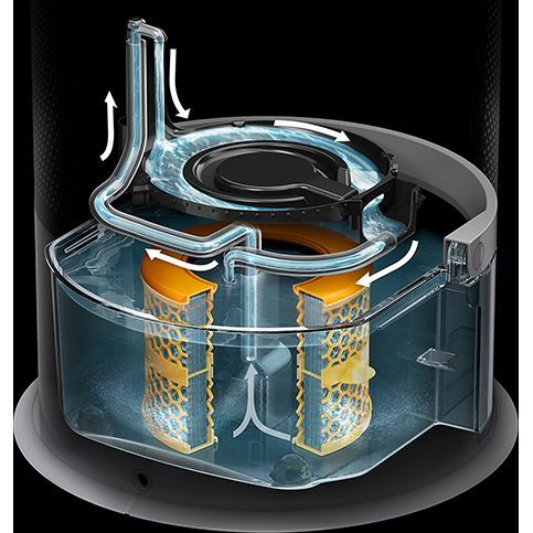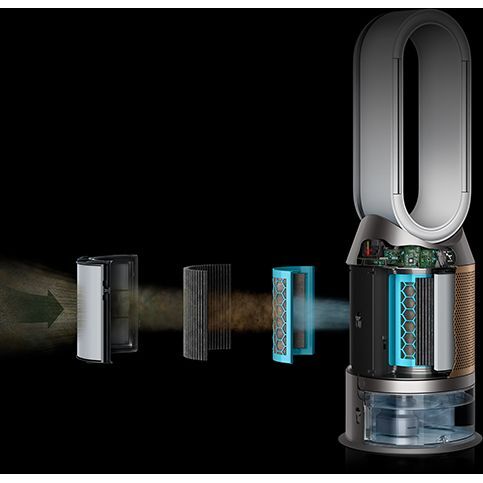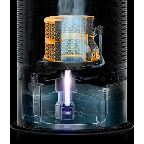 The Dyson purifier humidifier is engineered to help improve your air quality. Its activated carbon filter neutralises gases, its HEPA H13 filter captures 99.95% of particles as small as 0.1 microns3 and a catalytic filter destroys formaldehyde.1 Air Multiplier™ technology then projects purified, humidified air throughout the room2 – cooling you when required.