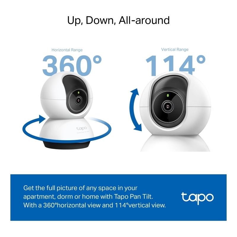 - Enjoy a full 360º horizontal and 114º vertical range for pan and tilt