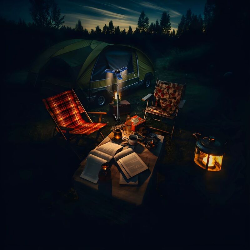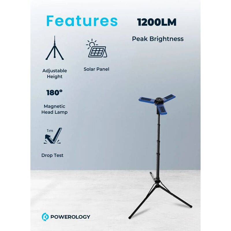 • Powerology 2600mAh Camping Light With Tripod Stand Built-in Solar Panels - Blue
