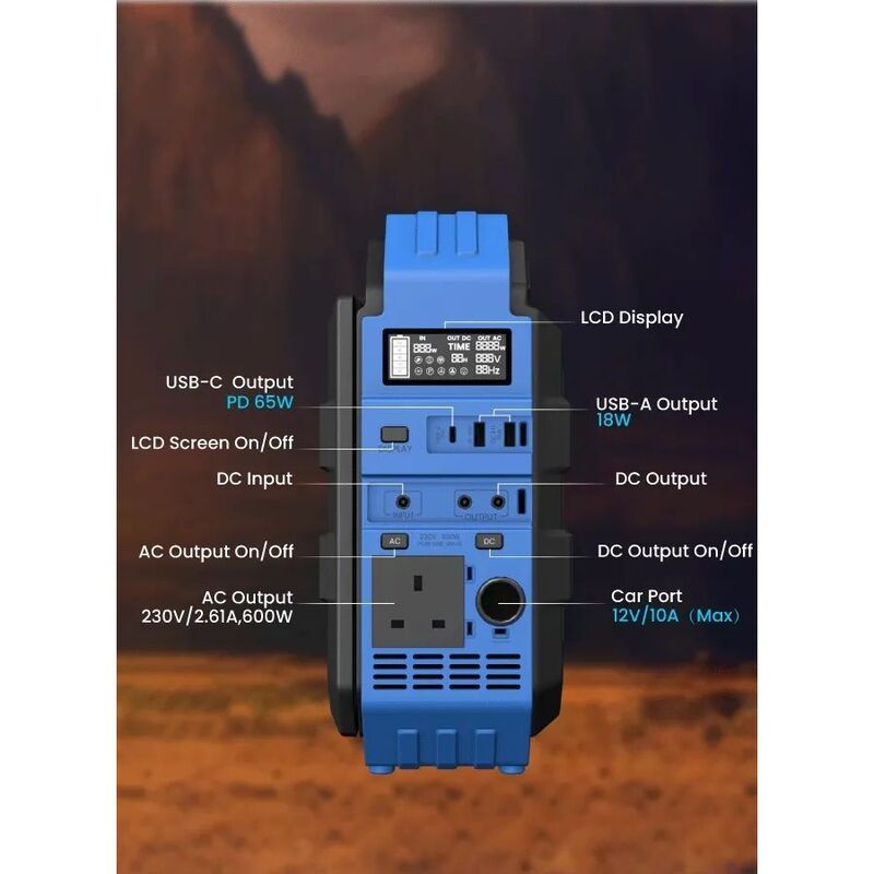 • Powerology 600W 192000mAh Portable Generator Integrated Solar Panel - Blue