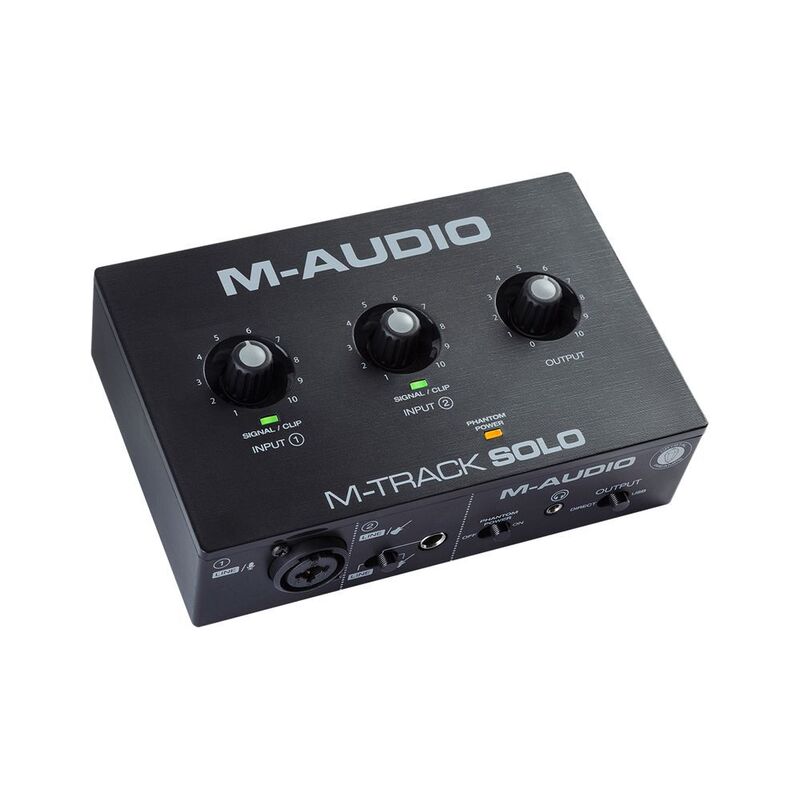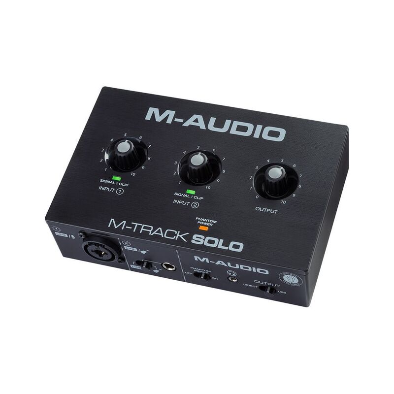 The M-Track Solo is the best, most portable recording interface in its class. It delivers 48 kHz audio resolution in a compact and easy to use format that is ideal for creating music on any Mac, PC or iOS device. This versatile interface works great for recording any type of sound source and features a single Combo Crystal Preamp with phantom power, plus a switchable Line / Instrument input making it compatible with any guitar or microphone. Plus, with M-Track Solo's 2-channel recording you can use both line inputs simultaneously to capture digital pianos, drum machines or any other stereo 1/4" device. M-track Solo is completely powered by USB, removing the need for an external power supply and making it perfectly portable for recording on-the-go. Throw it into your bag, grab a laptop, and create your next podcast, song, or mix anywhere you want!