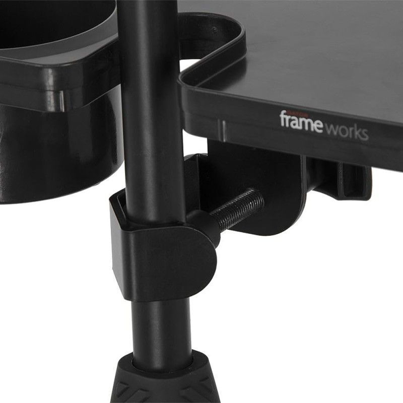When you're on stage or in the studio, the Gator Frameworks GFW-MICACCTRAY microphone stand accessory tray keeps small essentials within reach. An integrated pick holder keeps your guitar picks handy, and the vented cupholder securely holds your throat-soothing refreshment of choice. The easily-adjustable clamp fits tubing up to 1.38" diameter, which is enough to clamp onto drum hardware as well as microphone stands. For those small essentials that you need to get through the gig or recording session, get the Gator Frameworks GFW-MICACCTRAY mic stand accessory holder.