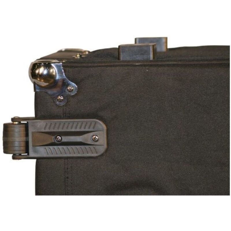 If you're a gigging guitar player you've had this problem for years: how do you take your combo amp on the road without damage? The new Gator G-212 Guitar Amp Transporter is the solution. This road-tough case is built with a 1/2" wood interior frame covered in 20mm military spec foam, with a tricot interior lining and a 600 denier nylon outer cover. The G-212's heavy-duty wheels and pull-out handle make the transporter a dream to move over long distances. Rugged web side handles make carrying over rough terrain easier, and an external pocket holds pedals, cables and gear. The G-212 is made for twin 12" amps while the G-112 handles single 12" models. Your amp is safe at last!