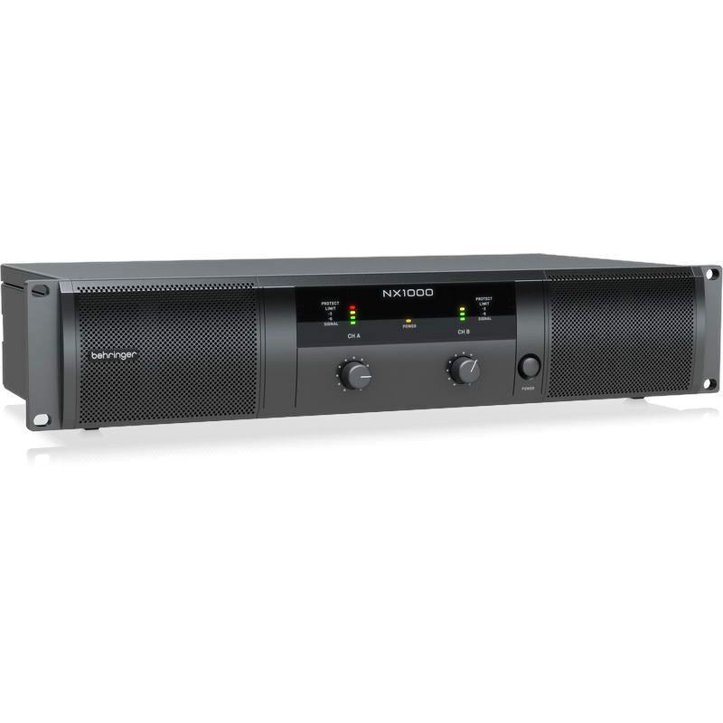 The Behringer NX1000 packs an impressive amount of power into a lightweight, cool-running unit. This power amplifier delivers 300 watts/channel into 4 ohms, 500 watts/channel into 2 ohms, or a whopping 1,000 watts into 4 ohms bridged, so you'll have plenty of headroom to work with. Experience low noise, superior transient response, and low power consumption, thanks to an efficient switch-mode power supply. Benefit from a linear frequency response at any speaker load, by virtue of the NX1000's SmartSense loudspeaker impedance compensation. Beyond that, Zero-attack limiters supply maximum output with reliable overload protection. The NX1000 comes complete with a built-in stereo crossover, reliable twist-lock speaker connectors, and precise 4-segment LED metering.