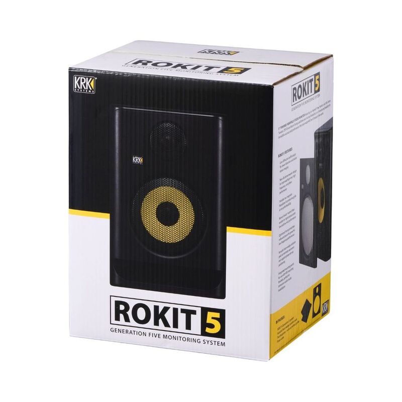 The KRK Systems ROKIT 5 Generation Five is an advanced studio monitor designed for precise sound and versatility, ideal for music production, film scoring, and personal projects. It offers three Voicing Modes for different tasks—mixing, creative work, and midrange analysis. Equipped with a 5″ Kevlar woofer, 1″ silk tweeter, and bi-amplified Class D power, it ensures smooth frequency response up to 40 kHz. With 25 EQ combinations and the KRK App, it enables easy acoustic tuning. Renowned for over 35 years, KRK is a top choice for professional sound.