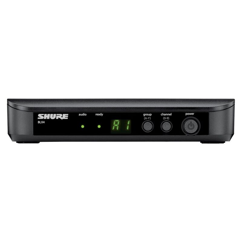The Shure BLX24/PG58 Wireless Vocal System combines professional-quality sound with simple setup and up to 14 hours battery life for legendary audio performance right out of the box. The system includes BLX4 tabletop single-channel receiver, PG58 handheld transmitter, microphone clip, power supply, 2 AA batteries, and user guide.