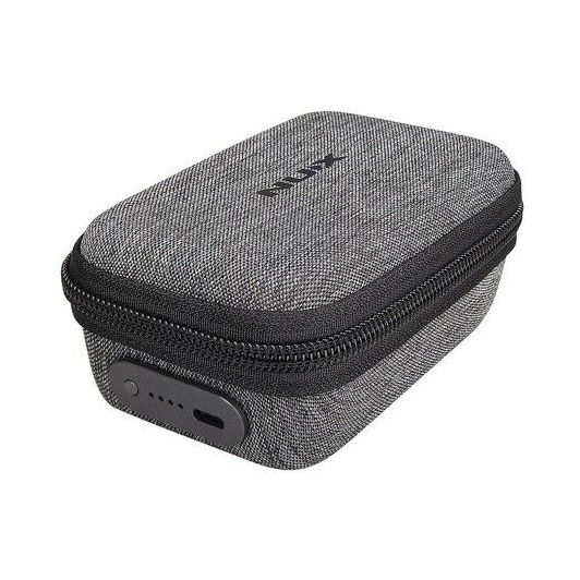 You can charge the RX and TX units with the rechargeable storage case, or by using the USB-C cable to charge. Both units can work while charging just in case.
