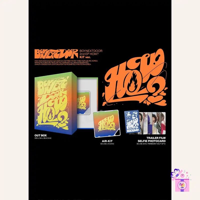 HOW? is the second EP album by BOYNEXTDOOR with “Earth, Wind, & Fire” as the title track. The physical album comes in eleven versions: Earth, Wind, Fire, six individual Member Sticker ver., KiT Ver. and Weverse albums.
