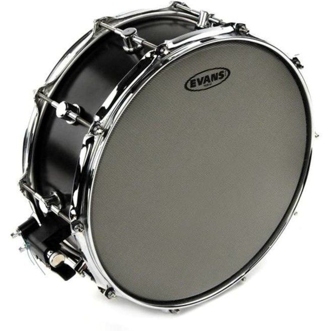 Evans Hybrid Coated snare drumheads feature a weave of two unique fibers originally intended for use on marching snare drums. This drumhead can hold up to the heaviest of hitters and offers a unique, coated wear-resistant texture, perfect for brushes and achieving maximum articulation.