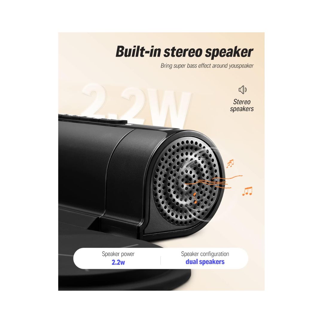 - Two stereo speakers delivering the powerful sound that reaches the volume of an electric drum kit and can be adjusted to nine different volume levels.