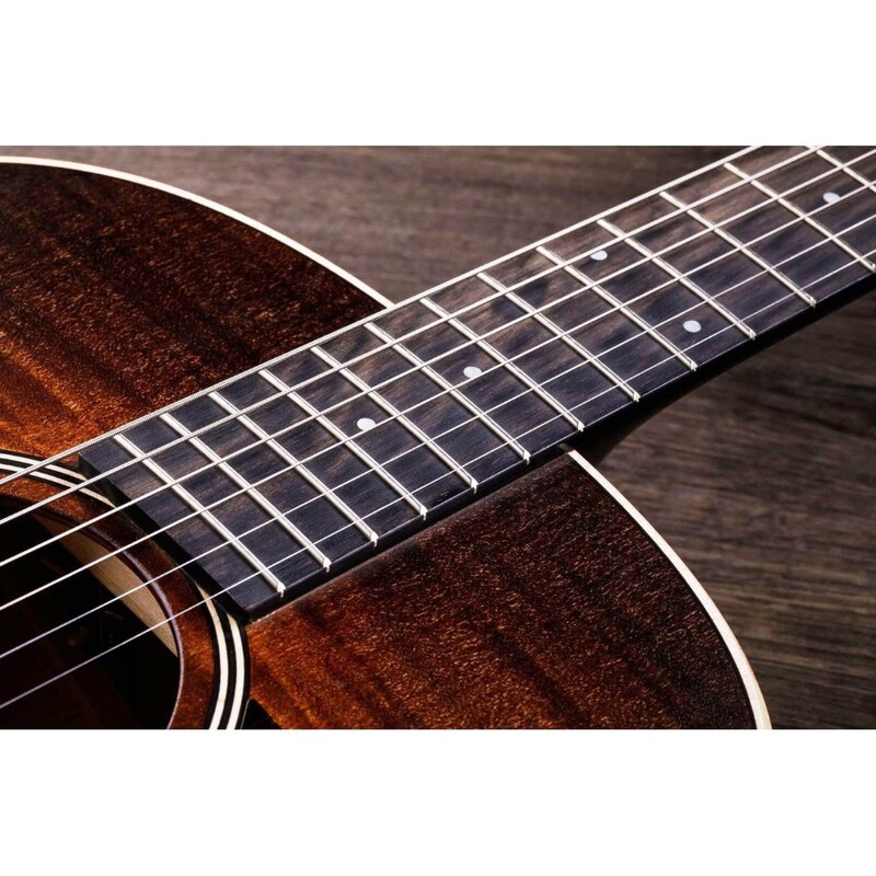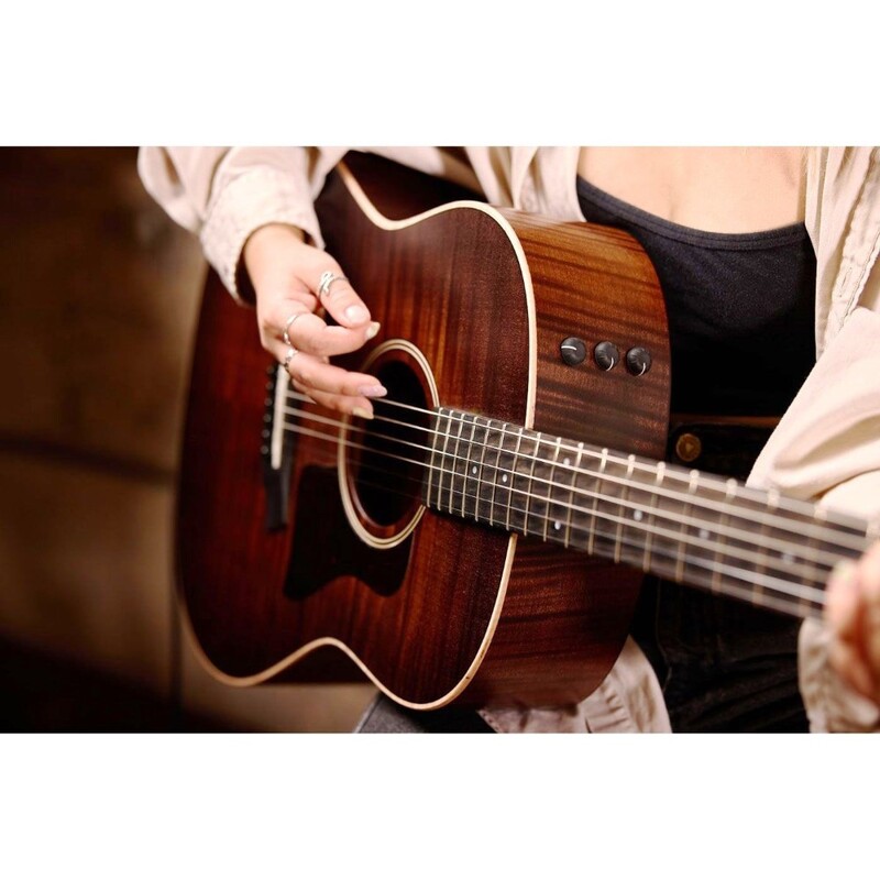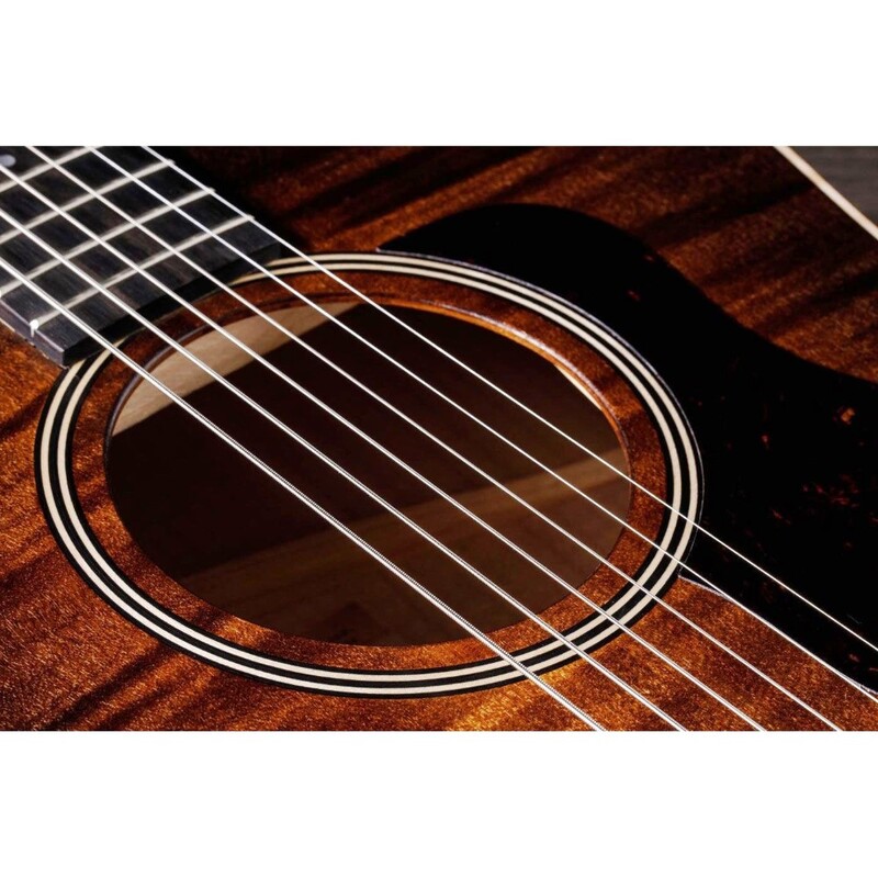 Crafted with spellbinding flame maple top, back, and sides, the Taylor American Dream AD27e bursts forth with a roaring balance of sparkling tone that's beyond your imagination. The AD27e’s Grand Pacific balanced body contours and air movement from V-Class bracing combine to create phenomenal projection for live unplugged applications. Outfitted with Taylor’s ES2 electronics, you can also take this guitar to the stage or the studio to sample it’s bright, clear note separation. Guitarists attest the AD27e sounds every bit as amazing as it looks. Did we mention, this solid wood guitar is made in America?