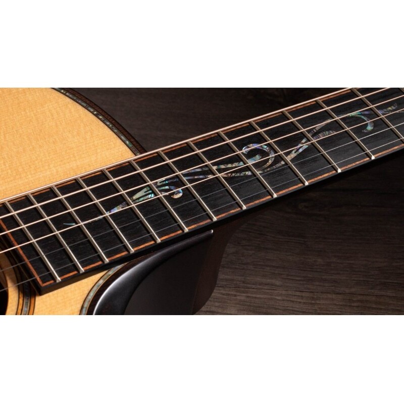 - Headstock: West African ebony overlay and binding, koa purfling, Spring Vine inlay