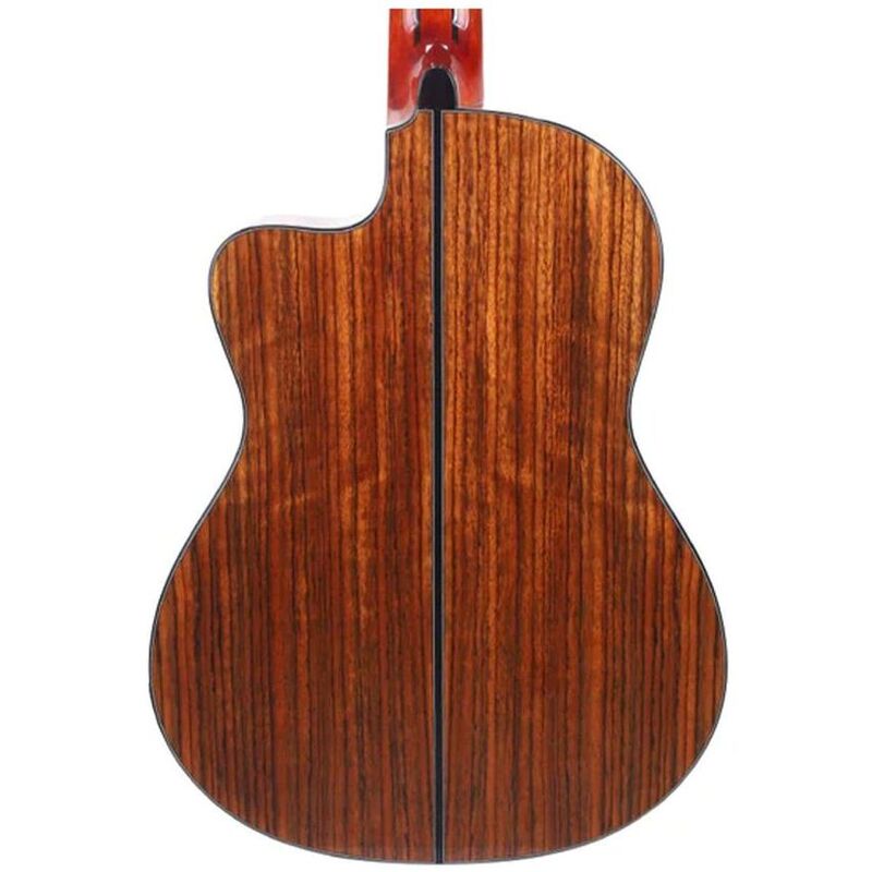Our stunning new 770 Series Thinline Cutaway Classical Guitar delivers master luthier craftsmanship, uncompromised tone and outstanding player comfort. Featuring a solid Red Cedar top, with patented ToneFlow Spanish fan bracing, and a 7cm Thinline Walnut body, the VC774TCE yields a superbly detailed and balanced tone despite its slim body. Its premium Mahogany neck with Amara Ebony fretboard is beautifully playable and responsive. The high-quality onboard Fishman Sonitone soundhole mounted preamp pickup system makes this guitar the ideal live performance companion.