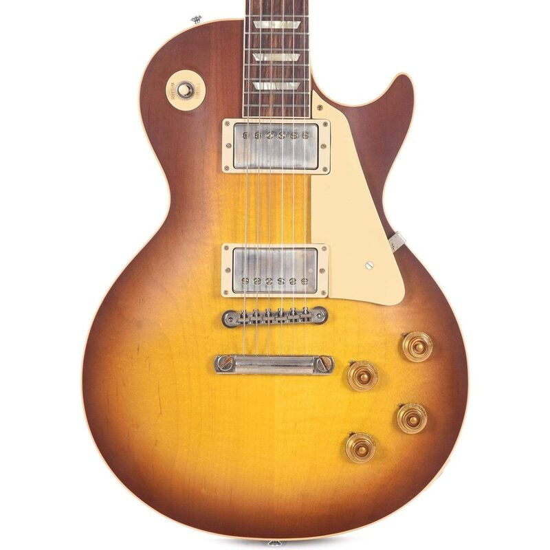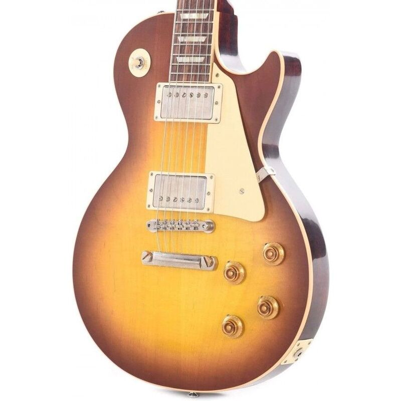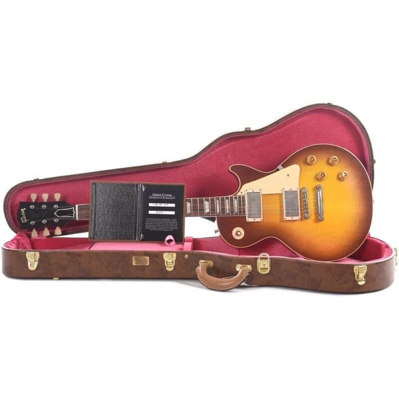 The Gibson Custom 1958 Les Paul Standard Reissue VOS is oozing with classic tone and vintage-original-spec authenticity. Its eye-grabbing VOS nitrocellulose lacquer finish captures the depth, richness, and hue of a genuine '58 Les Paul Standard. 1958 was the year the erstwhile Goldtop transitioned to an eye-catching sunburst finish, which makes the '58 one of the most iconic solidbody guitars ever made. Handcrafted by Gibson's elite Custom Shop luthiers, the 1958 Les Paul Standard Reissue VOS captures the essence of this important instrument in all its glory. It features top-shelf tonewoods, including a solid mahogany body and Chunky C profile neck, a two-piece maple top, and a silky smooth Indian rosewood fingerboard with 22 Historic narrow tall frets, Plek'd to perfection. Plug this beast into your favorite tube amp, and experience searing '50s PAF tones, courtesy of CustomBucker Alnico III unpotted pickups. Premium historical appointments, including cellulose Trapezoid inlays and vintage-style Kluson tuners complete this meticulous reissue.