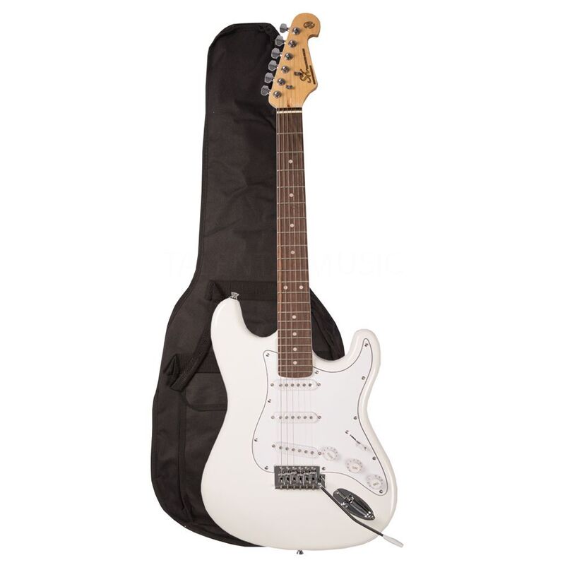 A popular strat style electric guitar in stylish white finish and includes bag!