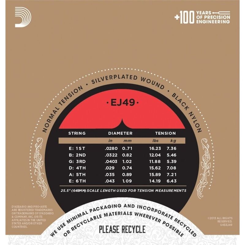 D'Addario Pro-Arte Classical guitar strings are preferred by players and guitar makers for their excellent tone, precision, and consistency. Each Pro Arte treble string is measured 200 times by a sophisticated, computer-controlled laser system that performs consistency and quality control cheques while determining the string's exact playing tension. These attributes ensure a great quality set of strings every time.D'addario J49 Classical guitar strings feature the same quality and precision as clear Pro Arte strings but offer black treble strings. This provides a more traditional look that any musician can appreciate.