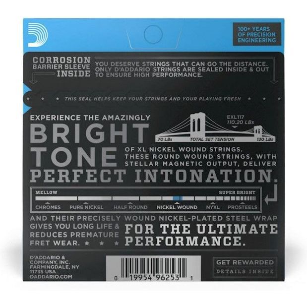 • Like all D’Addario electric guitar strings, XL Nickel are made with our proprietary Hex-Core, ensuring perfect intonation, consistent feel, and reliable durability.
