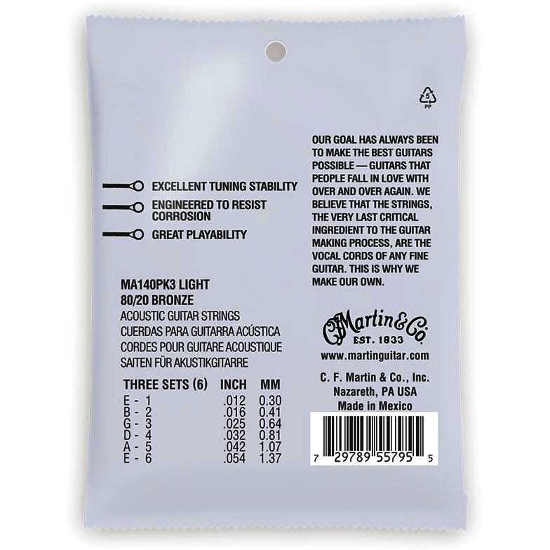 Martin Acoustic Guitar Strings SP 80/20 Bronze - Light - 0.12 - 0.54 (3 Packs)