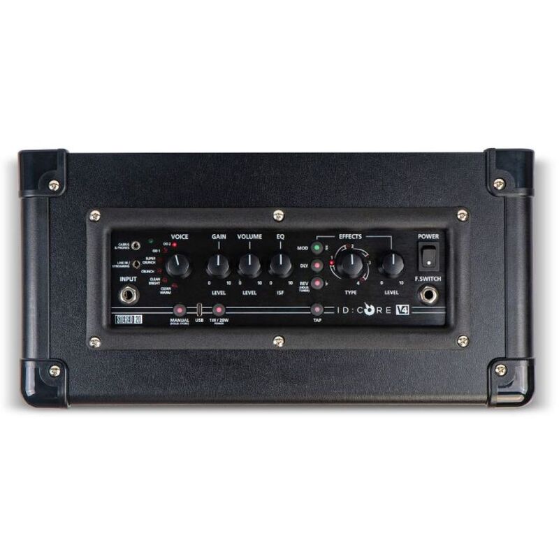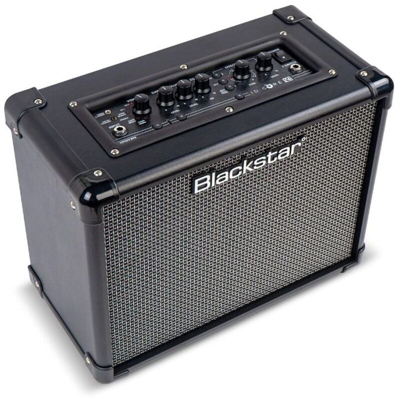 Experience the Blackstar ID-CORE V4. A versatile 20W entry-level guitar amp boasting signature Blackstar tone and studio quality effects. With patented ISF tone control and six modeled amp voices, sculpt your sound effortlessly. Engage in immersive stereo effects and finetune your tone with CabRig Lite. Utilize USB audio for recording and reamping and reduce power to 1W for quiet home practice. Livestream with ease and transform your amp into a home theater system. Portable and user-friendly, the ID-CORE V4 is perfect for gigs, practice sessions, and everyday use.