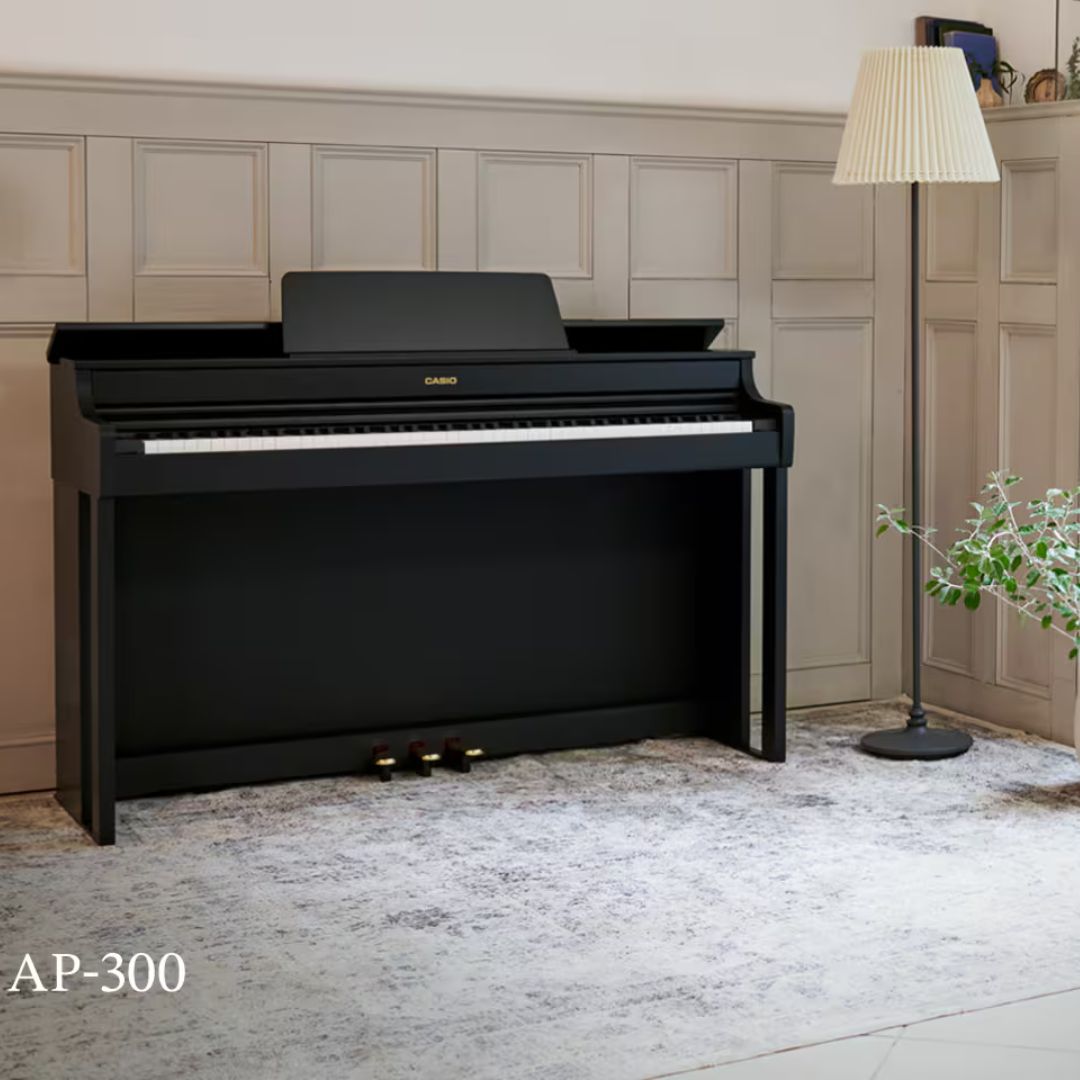 The Casio CELVIANO AP-300 blends classical elegance with modern innovation, powered by the Multi-Dimensional Morphing AiR Sound Source for rich, expressive tones. Its Smart Scaled Hammer Action Keyboard with textured ebony/ivory keys delivers authentic touch and nuanced playability. A 2-channel speaker system with Volume Sync EQ ensures immersive resonance at any volume, while Sound Mode and Headphone Mode enhance both performance and practice. Three pedals replicate grand piano control, offering precision and stability. With wireless MIDI & Audio connectivity and the CASIO MUSIC SPACE app, the AP-300 expands creative possibilities. Compact, stylish, and expressive, it’s the perfect entry into the piano world.