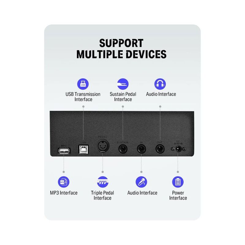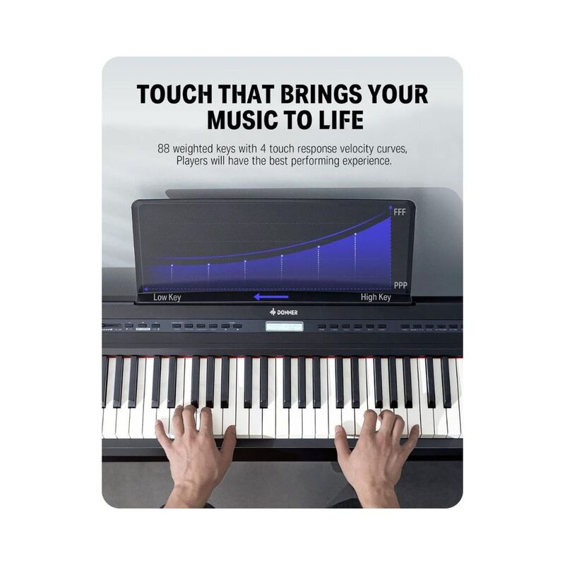 Experience the power of the pedal with Donner's responsive damper mechanism, accurately reproducing the detailed damper pedal response of a grand piano. This innovative feature allows you to control the resonance of the piano strings for a dramatic and lustrous sound, enhancing your musical expression and performance.