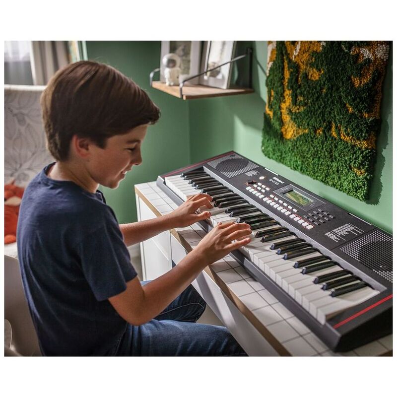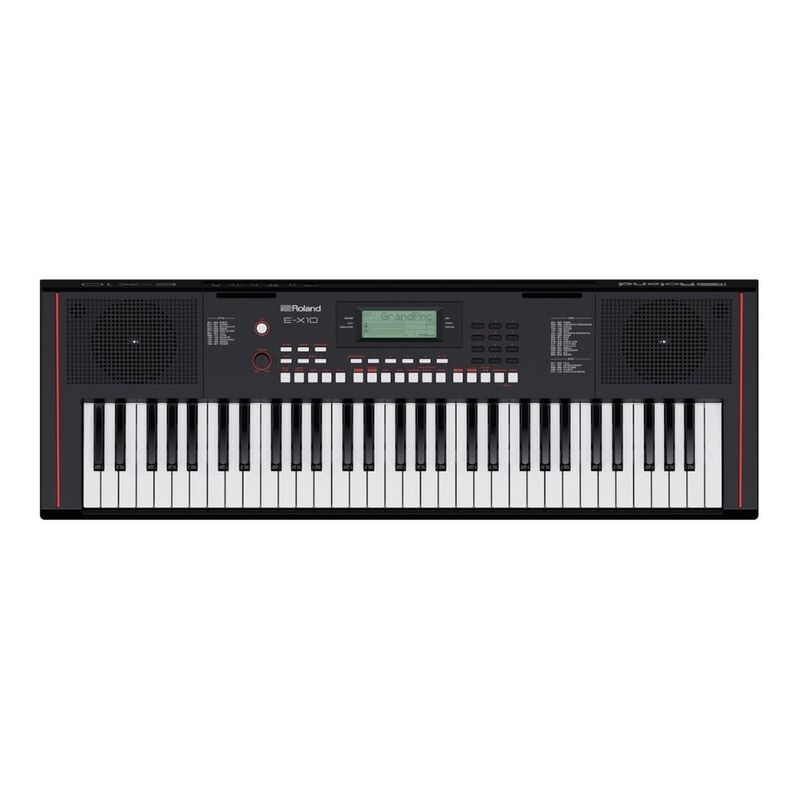 Launch your musical journey with the E-X10, an inspiring starter keyboard with quality features derived from professional Roland instruments. Have fun as you learn with expressive acoustic pianos and hundreds of other sounds. Command a full band with auto-accompaniment and connect a mic to sing along. Record keyboard performances to check your progress. And play anywhere with the sleek portable design, onboard stereo speaker system, and support for battery-powered operation.