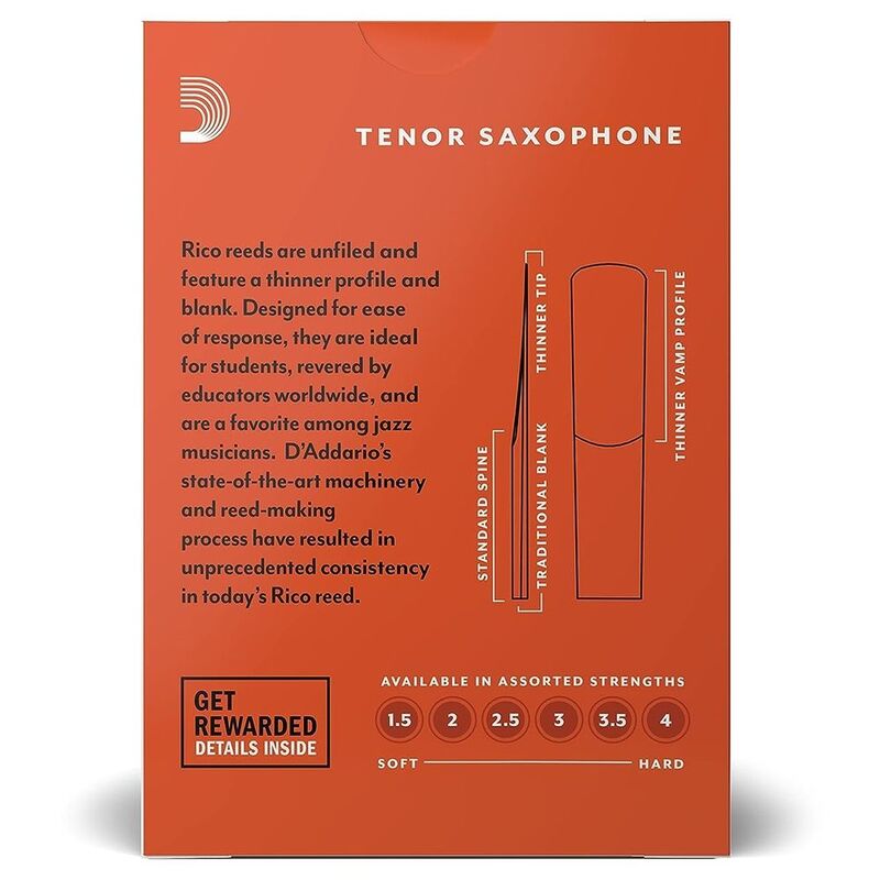 Rico By D'Addario Tenor Saxophone Unfiled Reeds - Strength 3 - (Box Of 10)