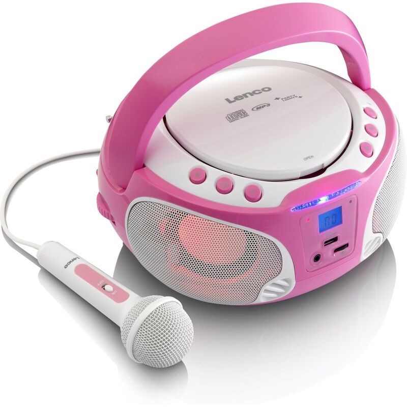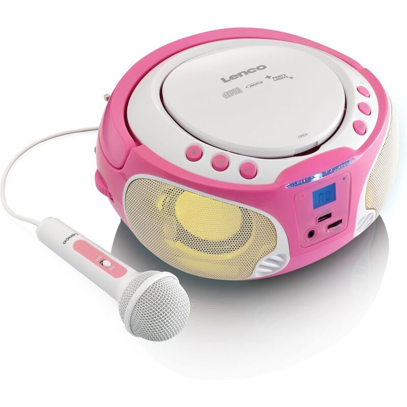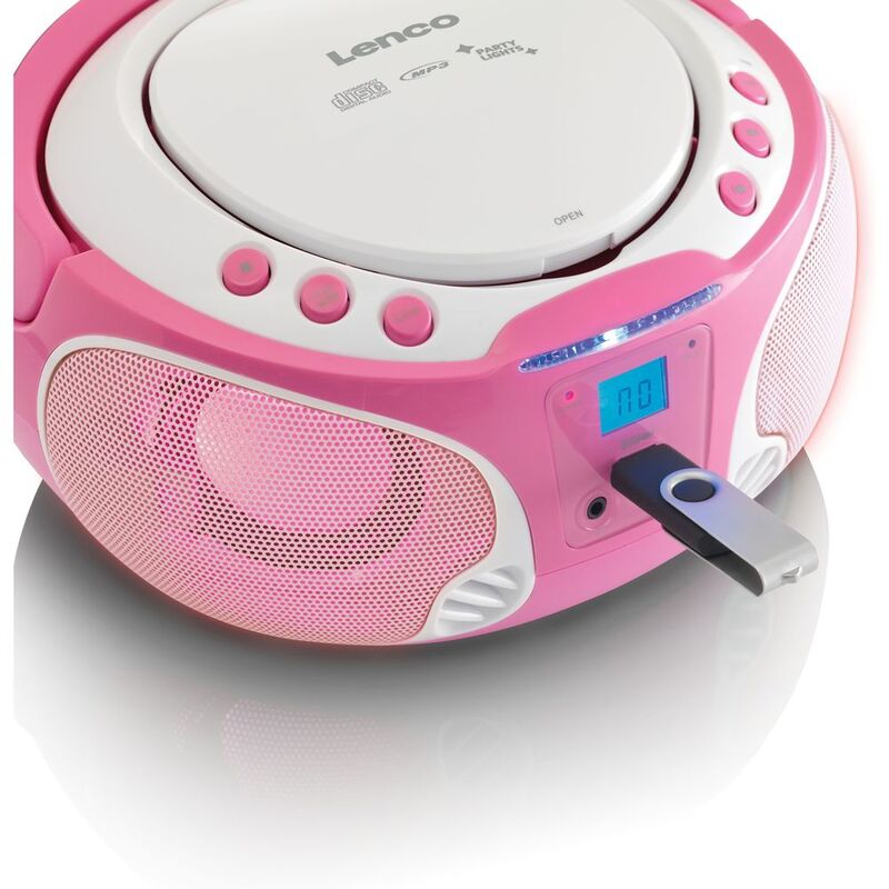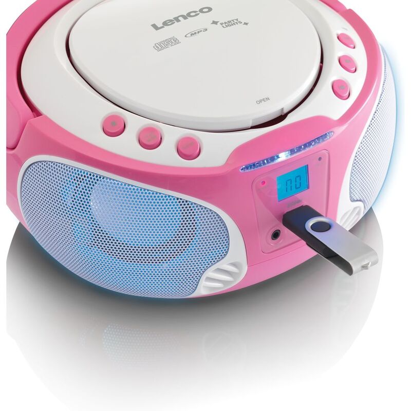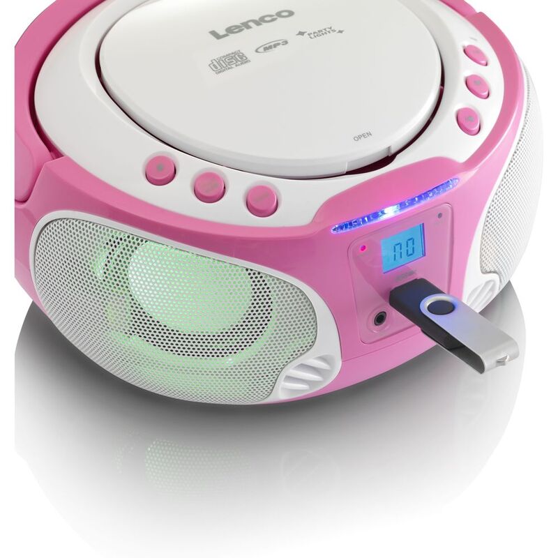 Lenco SCD-650PK Portable FM Radio with CD/Mp3/USB with LED Lighting - Pink