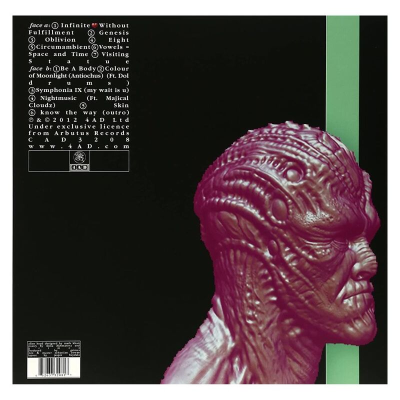 Vinyl LP pressing. Grimes is the moniker of Canadian producer, singer and artist Claire Boucher. She approaches music in a way that is both sensually pleasurable and exploratory; sonic experimentalism run through a 'pop' filter. The music is youthfully schizophrenic and searching, a voyage into the yet undefined territory of post-internet, re-spiritualized sound. Grimes strongly values a physical and communal experience of music (it's danceability), experimental vocalization, and psychedelia. Grimes is self-indulgence, devastation and ecstasy. Humanity, spirituality, escapism, identity, reality.