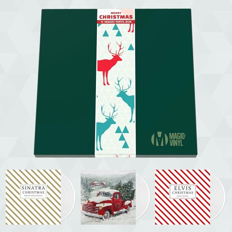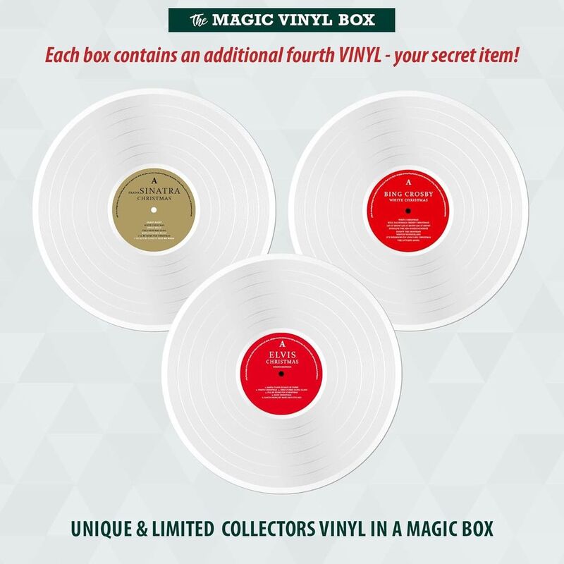 • The high-quality gift box contains these three tracks on 180g colored vinyl: Bing Crosby's "White Christmas," Frank Sinatra's "Christmas," and Elvis Presley's "Christmas (The Christmas Album)." Randomly selected boxes contain a special "secret item" as a surprise!