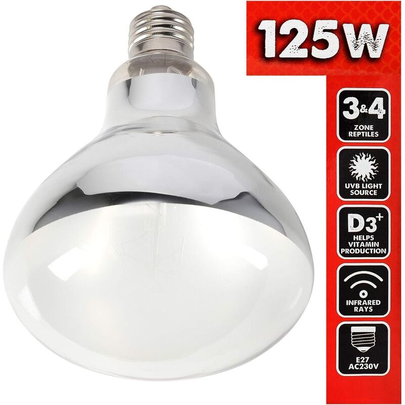 The Komodo Solar D3 UV Basking Bulb 125W is a must-have for any reptile habitat, offering both UVB radiation and heat essential for your pets' well-being. With a high UVB output, this bulb supports the synthesis of vitamin D3, aiding in calcium absorption and preventing metabolic bone disease. Its 125W power ensures a warm basking area, allowing reptiles to regulate their body temperature and engage in natural behaviors. Designed to mimic natural sunlight, this long-lasting bulb enhances the visual appeal of the enclosure and promotes healthy growth and activity in reptiles. Easy to install and compatible with standard fixtures, it’s suitable for a variety of species, including lizards, turtles, and snakes. With the Komodo Solar D3 UV Basking Bulb 125W, you’re creating a vibrant, healthy environment for your reptiles to thrive.