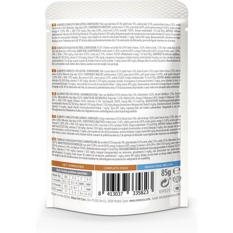 A delicious feast for your adorable kitten, this grain-free wet cat food is nutritionally complete and packed with premium chicken and white fish.
