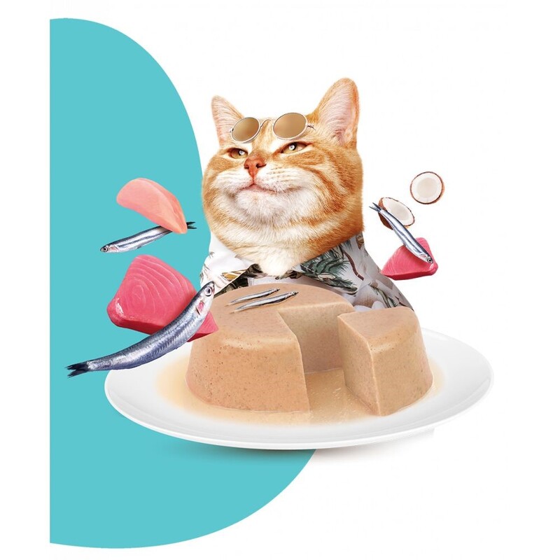 Ingredients : Chicken, Tuna, Sardine, Beef Liver, Anchovy, Amino Acid, Sunflower Oil, Taurine, Gelling Agents, Minerals, Vitamins, Colour, Coconut Oil, Prebiotics.